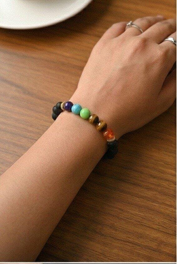 At its center, seven distinct natural gemstones form a bridge of light, each chosen to resonate with one of your body’s vital energy centers (Chakras). Whether you are a yoga practitioner, a meditation enthusiast, or simply someone seeking peace in a chaotic world, this accessory is your daily reminder to stay centered, focused, and aligned.